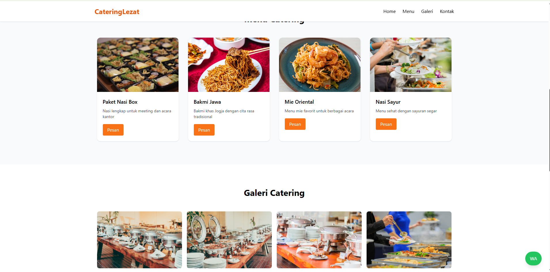 Landing page bisnis catering & nasi box.