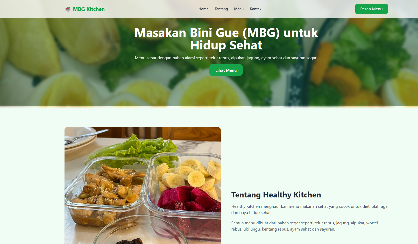 Landing page bisnis Healthy Kitchen.