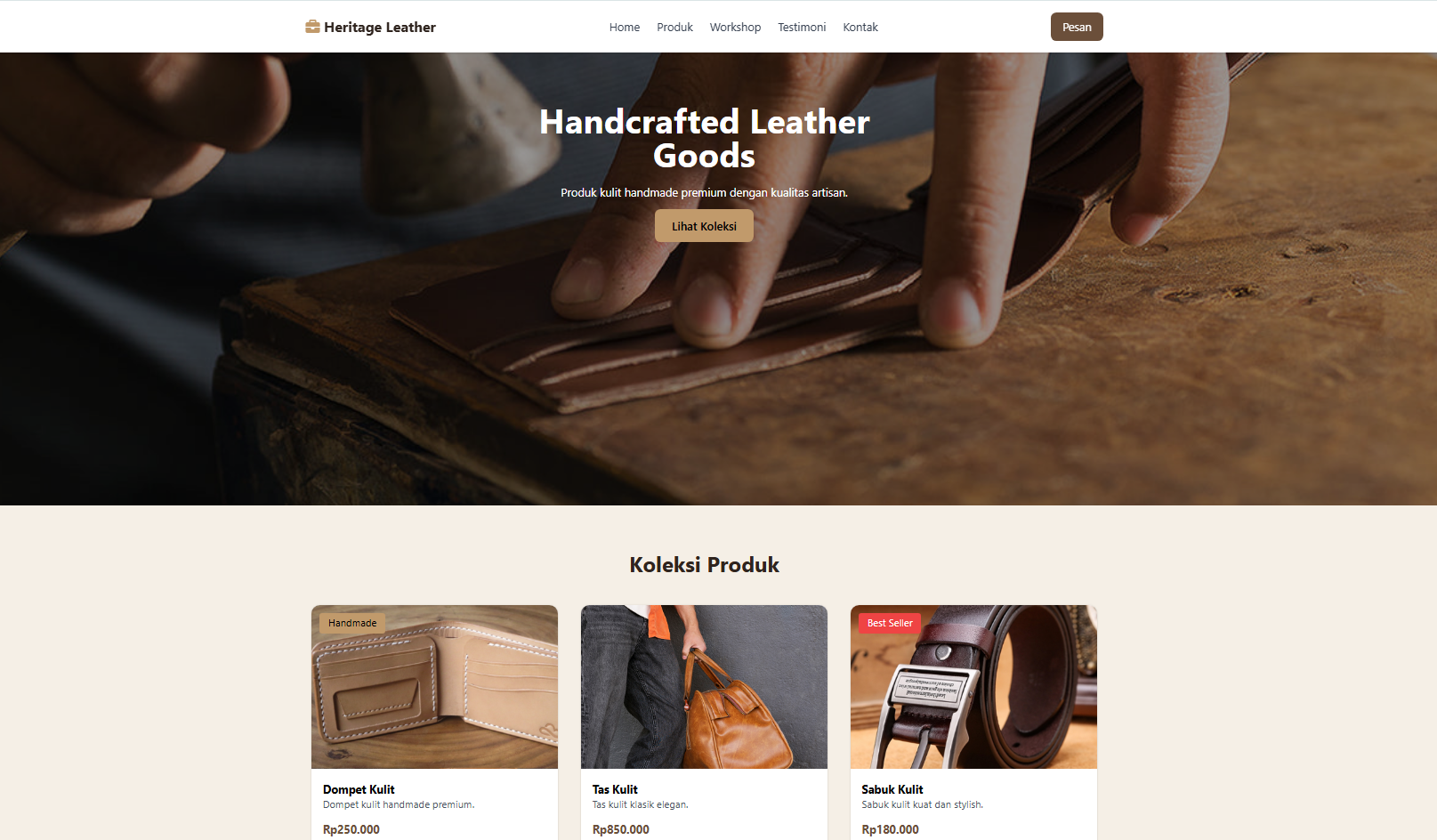 Landing Page Leather Craft.