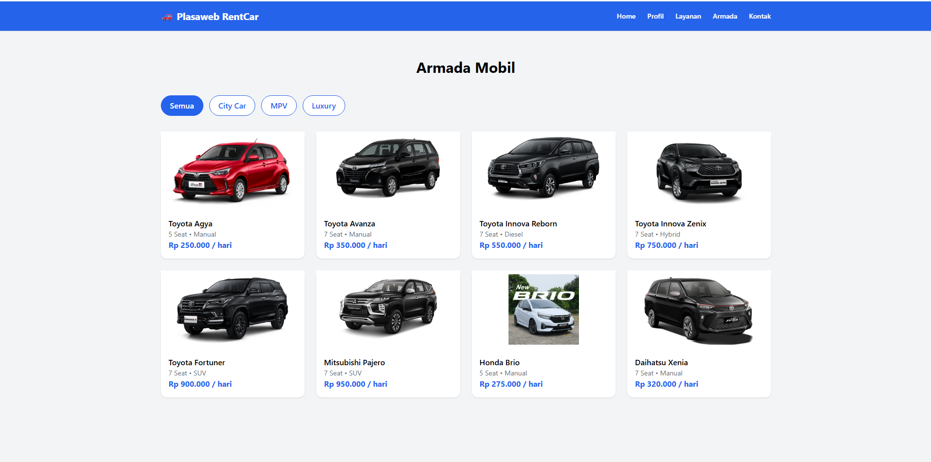 Template landing page jasa rental mobil.