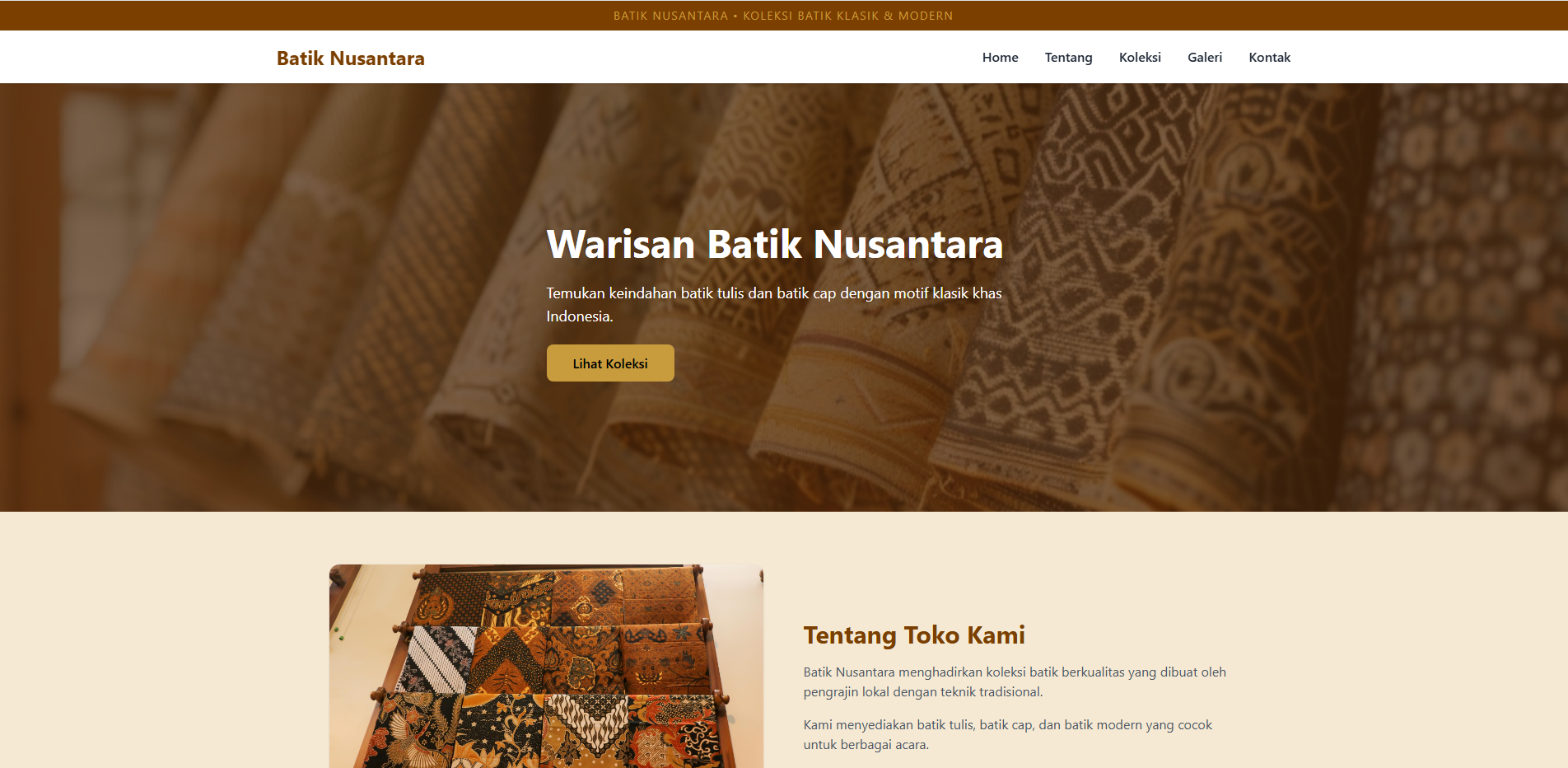 Landing page toko batik modern.