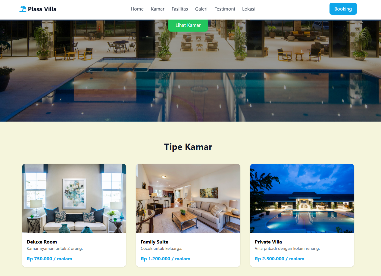 Landing page Villa Resort.