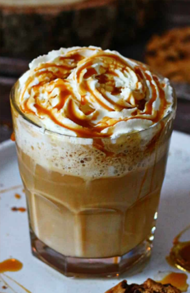 Latte lembut dengan sirup karamel manis.