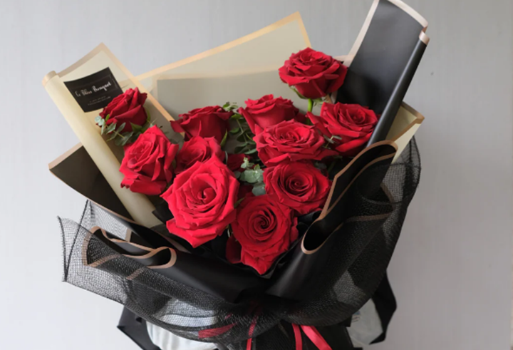 Buket mawar merah elegan.